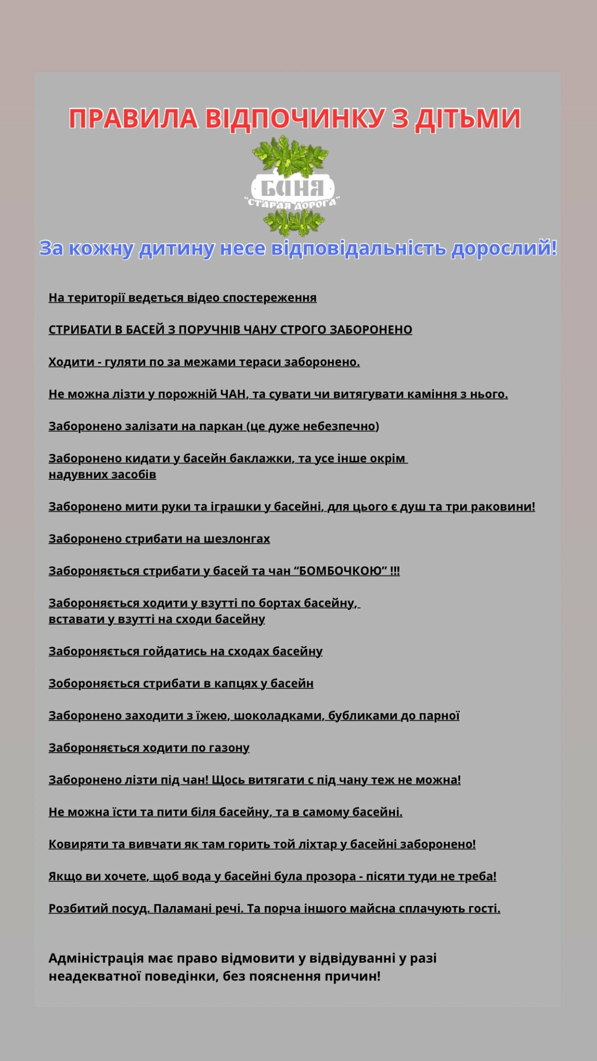 - Баня з басейном — 900 грн/година, мінімум 2 години.